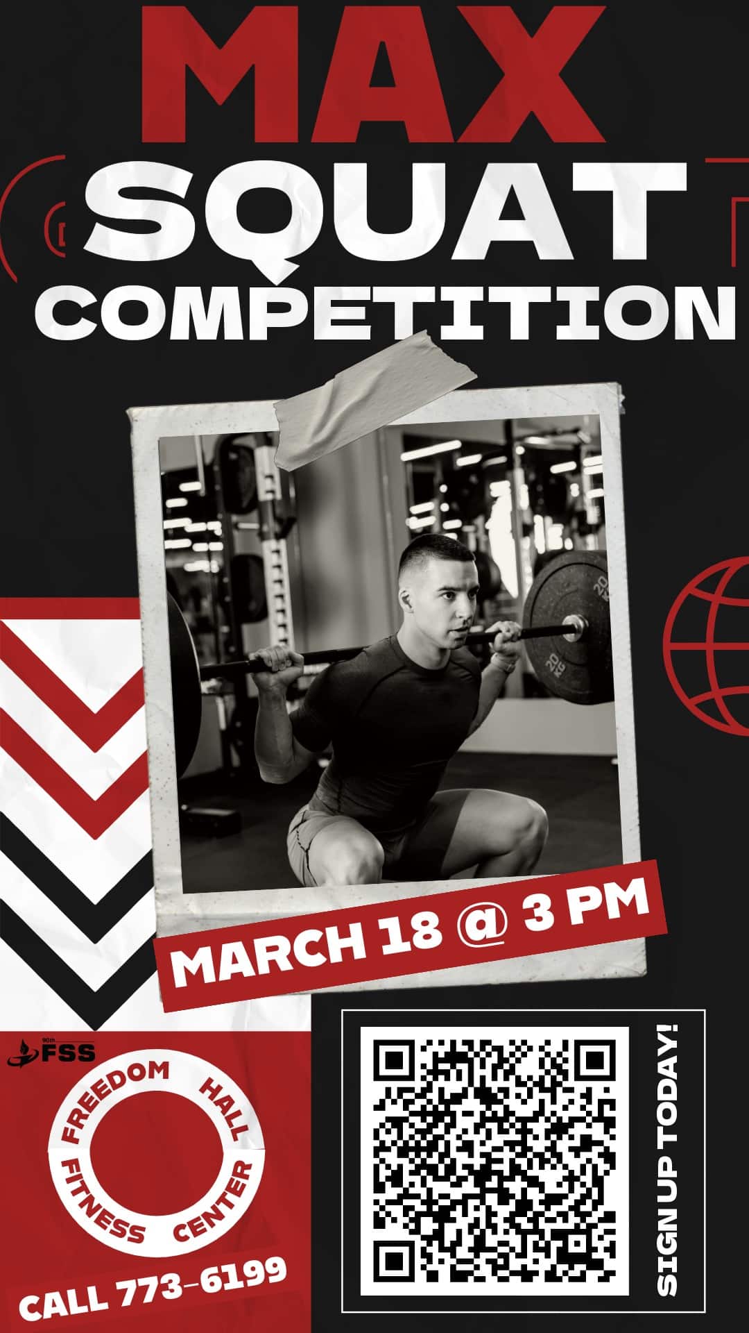 March 18, 3 p.m. Max Squat Competition Participants compete in squatting. Scoring based on Wilks scale, male and female categories. Lifters allowed three max attempts; check-in required by 3 p.m. event day. |